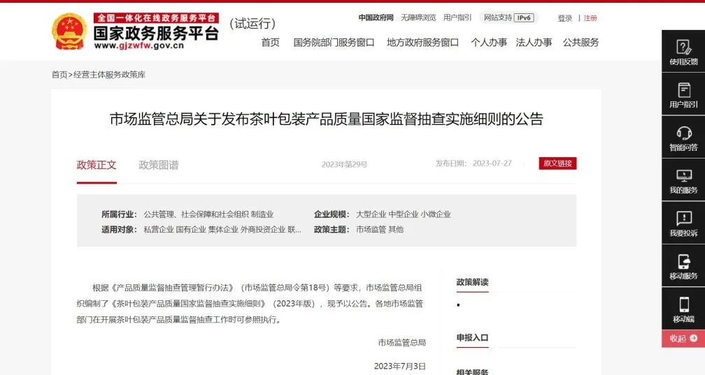近日,市場監(jiān)管總局首次發(fā)布了《茶葉包裝產(chǎn)品質(zhì)量國家監(jiān)督抽查實施細(xì)則》(2023年版)(以下簡稱《細(xì)則》),對茶葉包裝產(chǎn)品質(zhì)量的抽樣方法、檢驗依據(jù)、判定規(guī)則、判定原則等作出了規(guī)定。